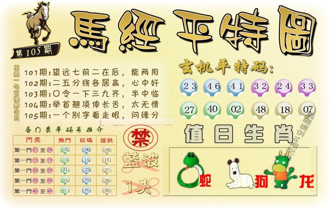 | 105期 | 龙马虎 | 猪狗 | 鸡 |